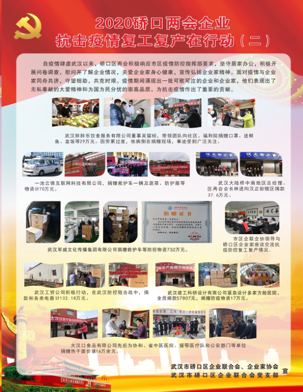 封二+封三:2020 硚口兩會(huì)企業(yè)抗擊疫情復(fù)工復(fù)產(chǎn)在行動(dòng)